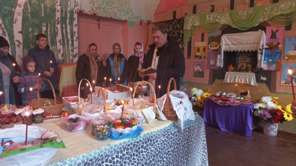 Накануне праздника Светлой Пасхи, 11 апреля,  в Стегримово настоятель Успенского храма отец  Андрей рассказал о значимости этого праздника и провёл освещение яиц и куличей.