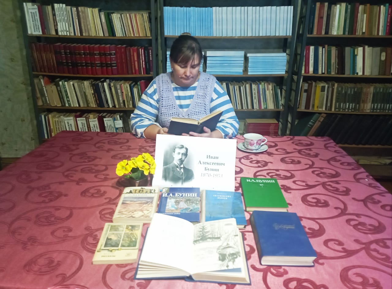 К этой знаменательной дате в Барсуковской библиотеке прошел литературный дилижанс «Бунин – явление редчайшее…». Присутствующие ознакомились с основными этапами жизни и творчества писателя. Был охвачен практически весь период жизни Бунина - описана история его родителей, подробно рассказано о матери, отце и братьях, гимназических годах и детстве писателя, о его первых пробах пера, о становлении его как писателя, о том, как формировалось литературное мировоззрение писателя. Познакомились с известными стихами автора: «Детство», «Крупный дождь в лесу зеленом…», «Родник», «Листопад», «Осень» и с удовольствием прочитали их вслух. В библиотеке была оформлена книжная выставка «Неугасимая лампада Бунина».