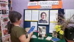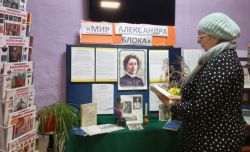 28 ноября исполняется 145 лет со дня рождения Александра Александровича Блока, великого русского поэта и драматурга, чьё творчество оказало огромное влияние на эпоху Серебряного века. В честь этой знаменитой даты в библиотеке прошло мероприятие, посвященное жизни и творчеству великого русского поэта «Мир Александровича Блока». Посетители познакомились с лучшими произведениями Блока, а также материалами, рассказывающими о его жизни и творчестве, с воспоминаниями современников. Библиотекарь рассказала присутствующим биографию поэта и интересные факты из жизни Александра. Каждый желающий мог прикоснуться к творчеству русского поэта, прочитав своё любимое стихотворение. Завершилось мероприятие обсуждением участниками своих впечатлений о творчестве поэта.