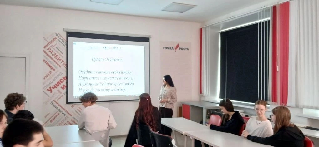 В преддверии Всемирного дня поэзии, который отмечается для того, чтобы отдать дань уважения поэтам, напомнить о традиции поэтических чтений и привлечь внимание к чтению, написанию и преподаванию поэзии, Центральная библиотека в классе "Точка Роста" Монастырщинской средней школы имени А. И. Колдунова провела поэтический звездопад "И в каждой строчке вдохновенье...".